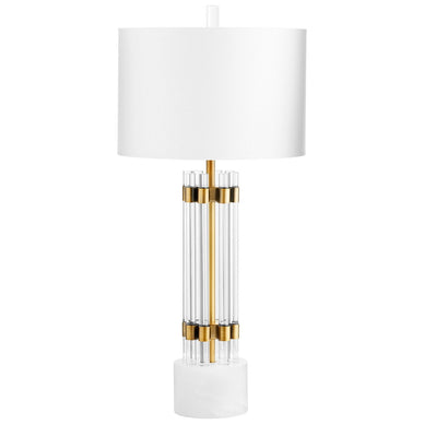Material: Vidrio y Mármol con pantalla de lino blanco hueso