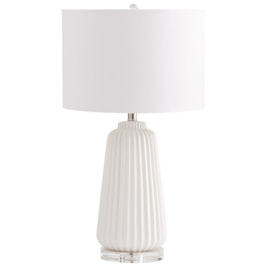Material: Base de Cristal, Cerámica, Forro Blanco, Pantalla de Lino Blanco Hueso