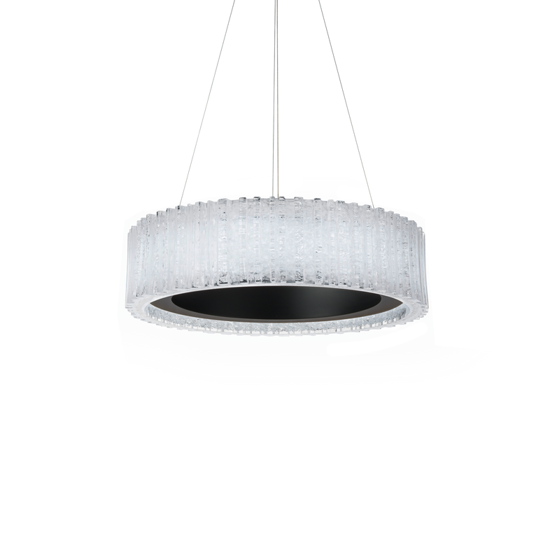 Material: Gruesa pantalla artesanal fabricada con cristal Los finos cables aeronáuticos proporcionan un aspecto ultralimpio para una altura de suspensión ajustable Base con un mínimo de herrajes Esta luminaria